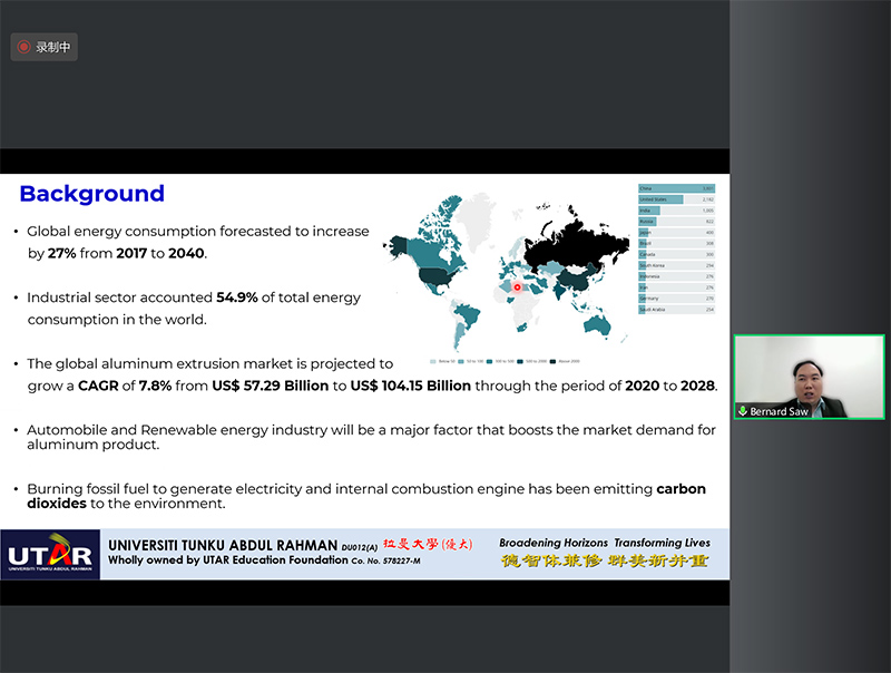 Assoc. Prof. Bernard Saw Lip Huat from Universiti Tunku Abdul Rahman, Malaysia, delivered a keynote speech on Environmental and Energy management: Prospective Scenarios for the Aluminium Industry.