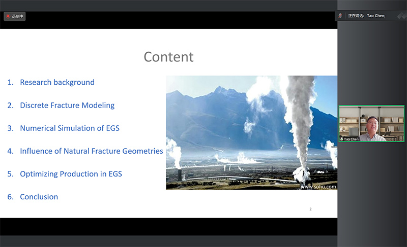 Assoc. Prof. Tao Chen from Shandong University of Science and Techonology, delivered a keynote speech on Optimizing Production in Enhanced Geothermal Systems Through a Coupled Hydraulic Flow and Heat Transport Discrete Fracture Model.